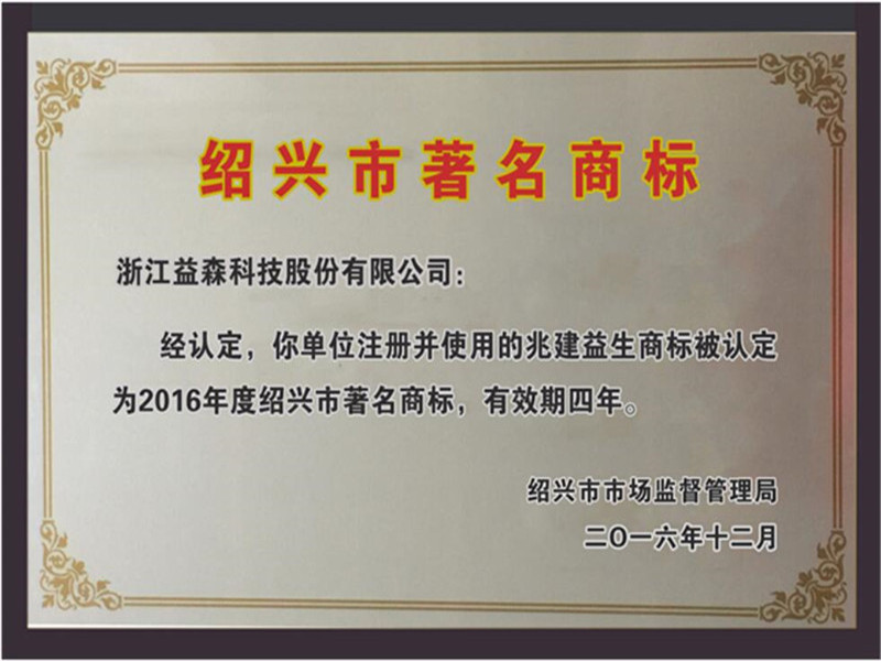 绍兴市闻名牌号证书